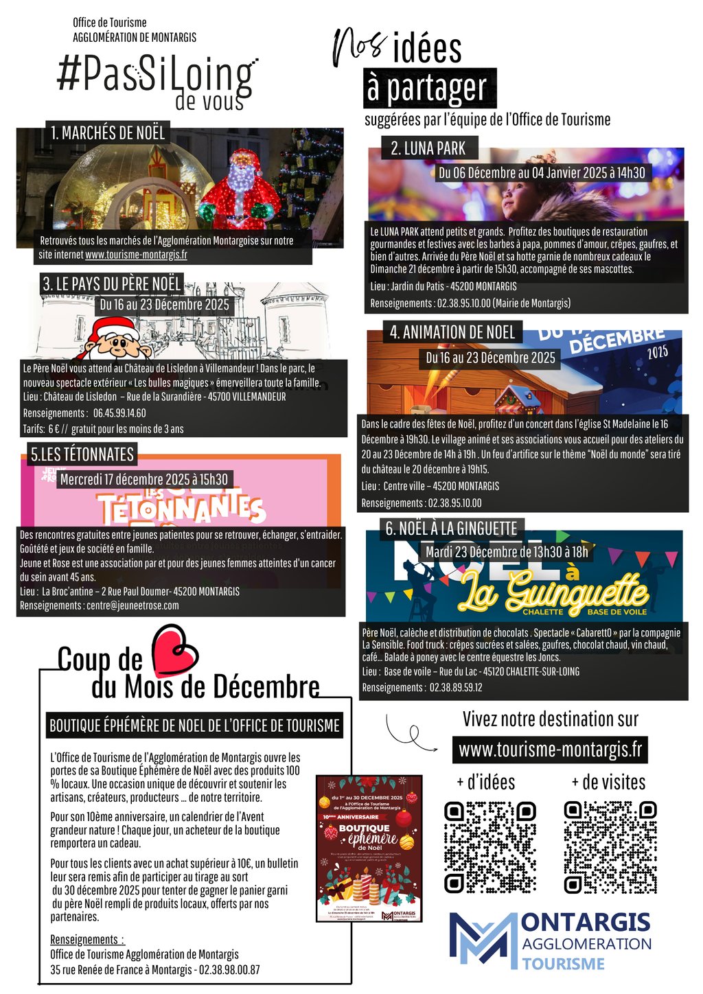 Ci-joint la brochure des manifestations se déroulant sur l’Agglomération de Montargis durant le mois de décembre 2025.