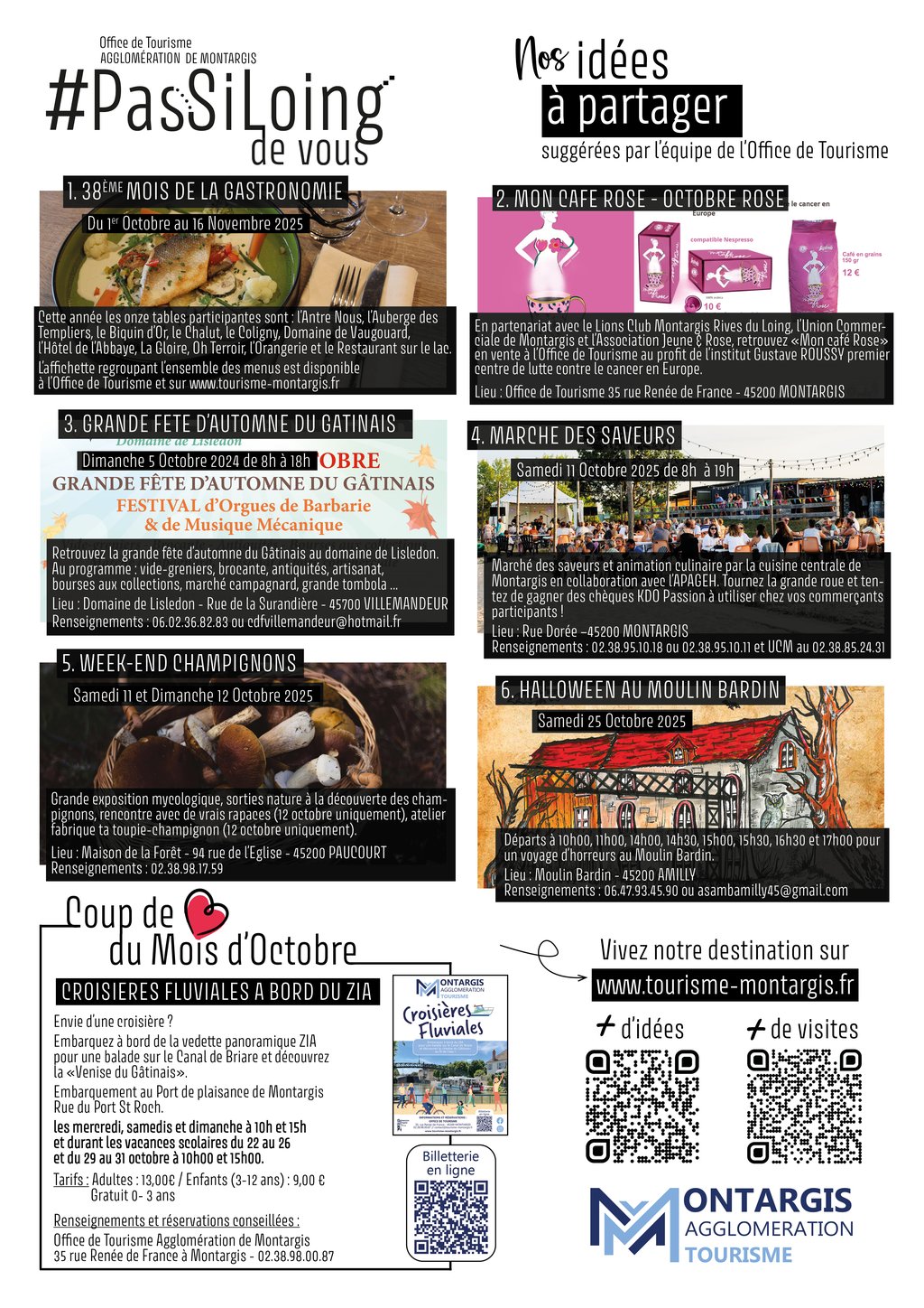 Ci-joint la brochure des manifestations se déroulant sur l’Agglomération de Montargis durant le mois d'octobre 2025.
