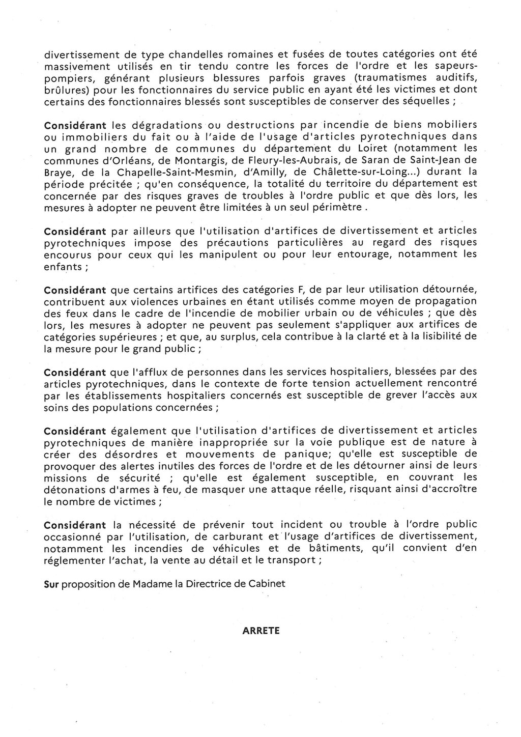 ARRÊTÉ PRÉFECTORAL RÉGLEMENTANT TEMPORAIREMENT L’ACHAT, LA VENTE, LE TRANSPORT ET L’UTILISATION D’ARTIFICES