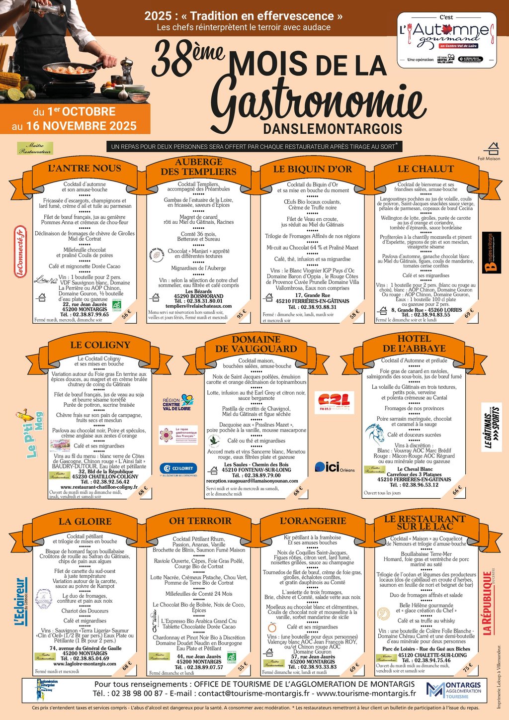 Pour tous renseignements : OFFICE DE TOURISME DE L’AGGLOMERATION DE MONTARGIS