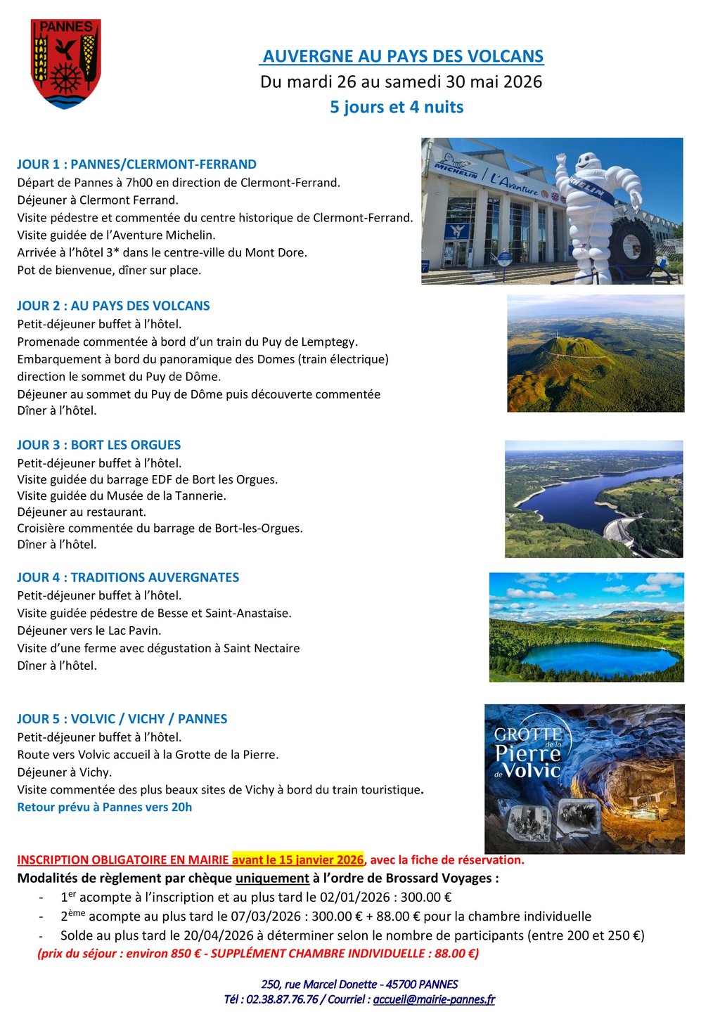 La commission seniors de Pannes vous propose de découvrir en 2026, pour son voyage annuel