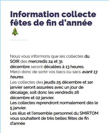 Décalage des collectes de ramassage SMIRTOM