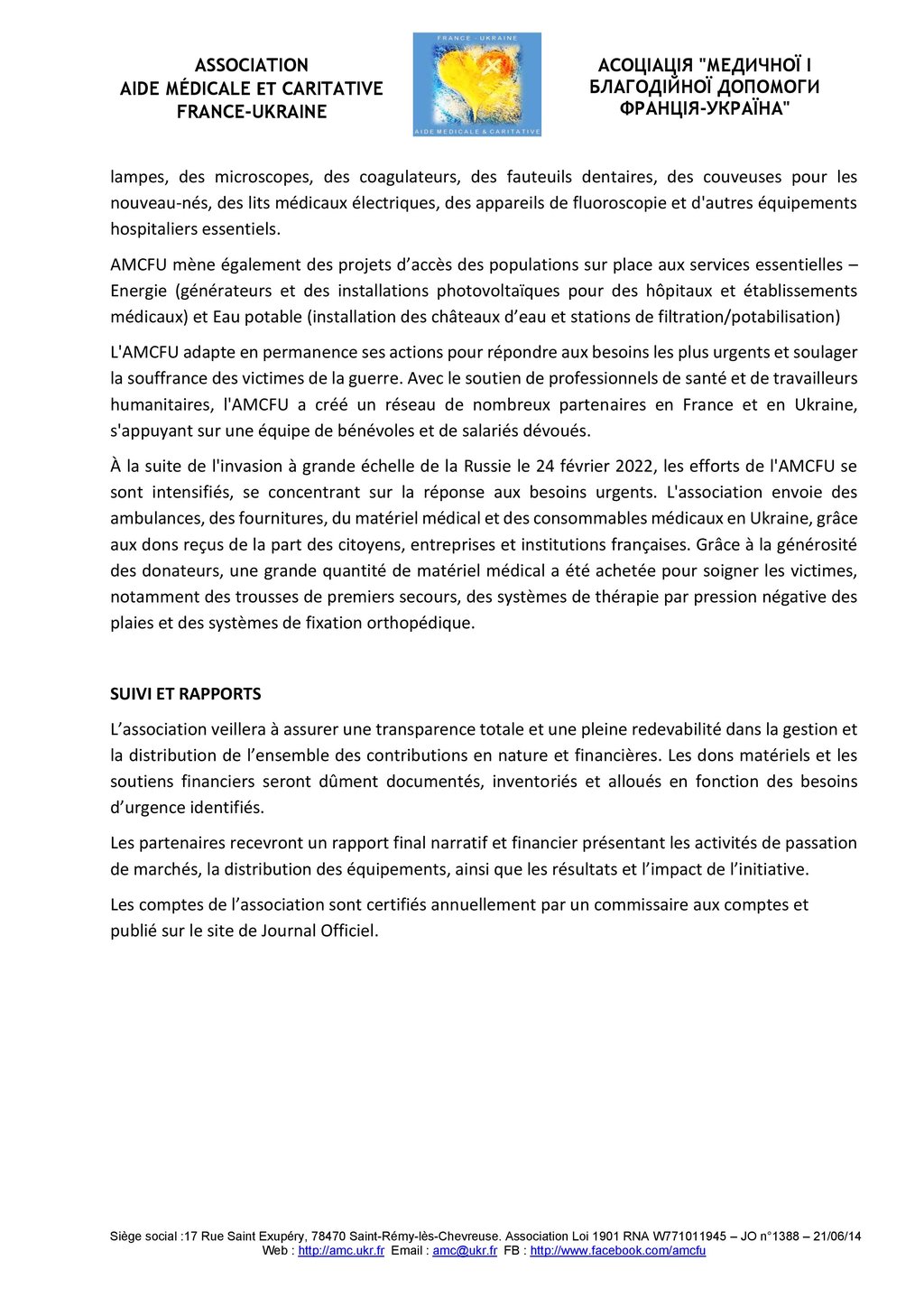 Les dons financiers ouvrent droit à une réduction fiscale en France (66 % pour les particuliers et 60 % pour les entreprises). L’association garantit un suivi transparent des contributions et transmettra un rapport final sur l’utilisation des fonds et des équipements et l’impact des actions menées.