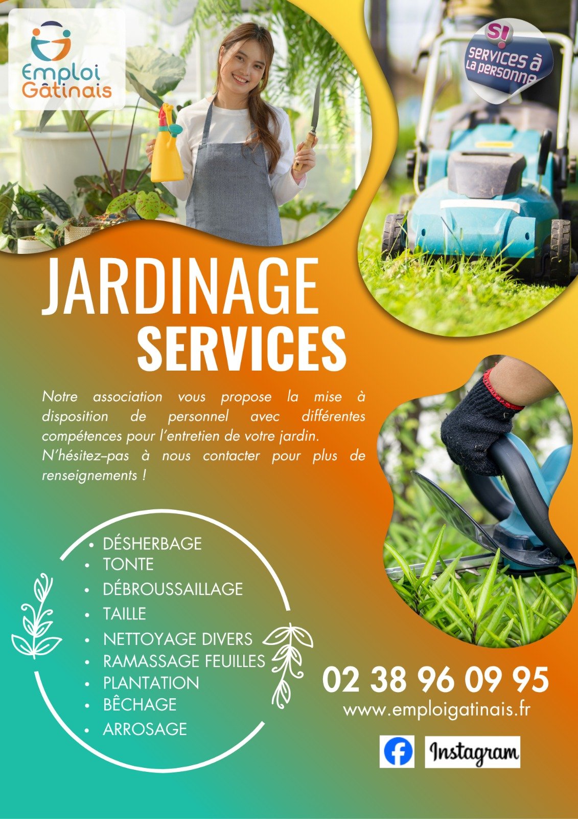 L'association Emploi Gâtinais propose la mise à disposition de personnel avec différentes compétences pour l'entretien de votre jardin.